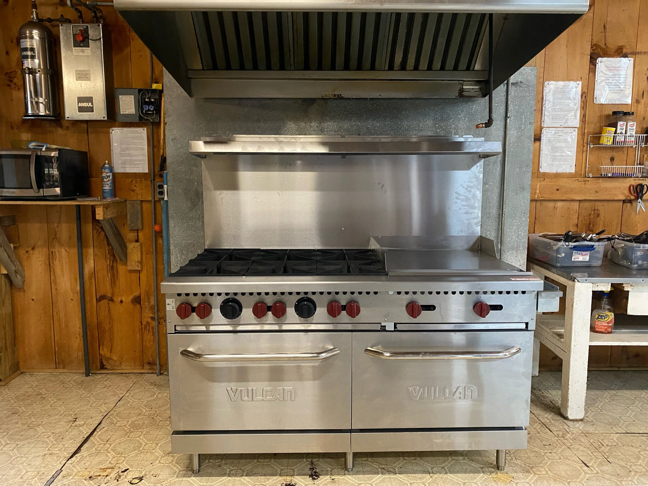 The kitchen has a new stove! While we love to celebrate the history of camp, the old stoves were very much ready for retirement. The new one still has two big ovens to fit our baker’s trays, but they are combined in one unit instead of two so that everything fits properly under the hood. We decided to keep the griddle top since so many people enjoy using it, but we’ve parted ways with the rusty old can that used to collect the scrapings (if you look carefully, you can see a fancy grease collector attached on the griddle side).